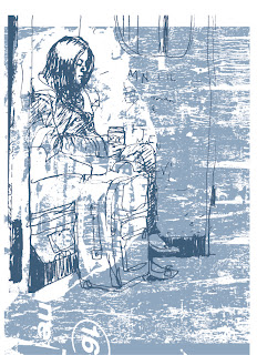 I draw in small, handy A5 Seawhite sketchbooks, I usually draw with a fine propelling pencil, it probably contravenes some arcane railway health and safety rule to sharpen a pencil on a train with a penknife anyway, in any case I found it difficult to sharpen pencils on the train. (I was always told as a